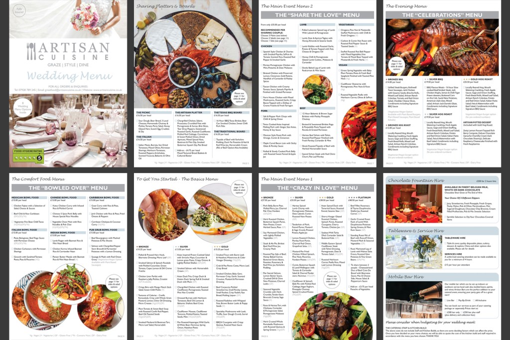 Artisan 12pg wedding brochure Catalogues & Brochures 12 page A5 Wedding Menu brochure for Artisan Cuisine, Corby