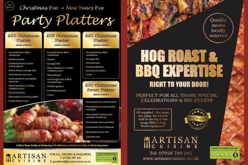 Artisan adverts – xmas and hog roast Flyers, Posters & Adverts Xmas party platter flyer and A1 hog Roast poster
