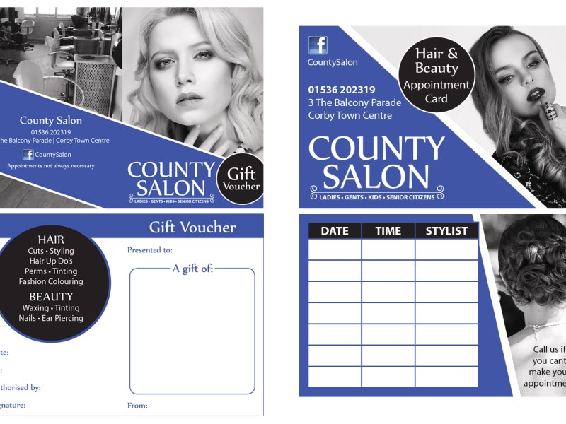 County Salon Trifold Leaflet Leaflets & Trifolds Hair Salon in Corby trifold pricelist / menu leaflet