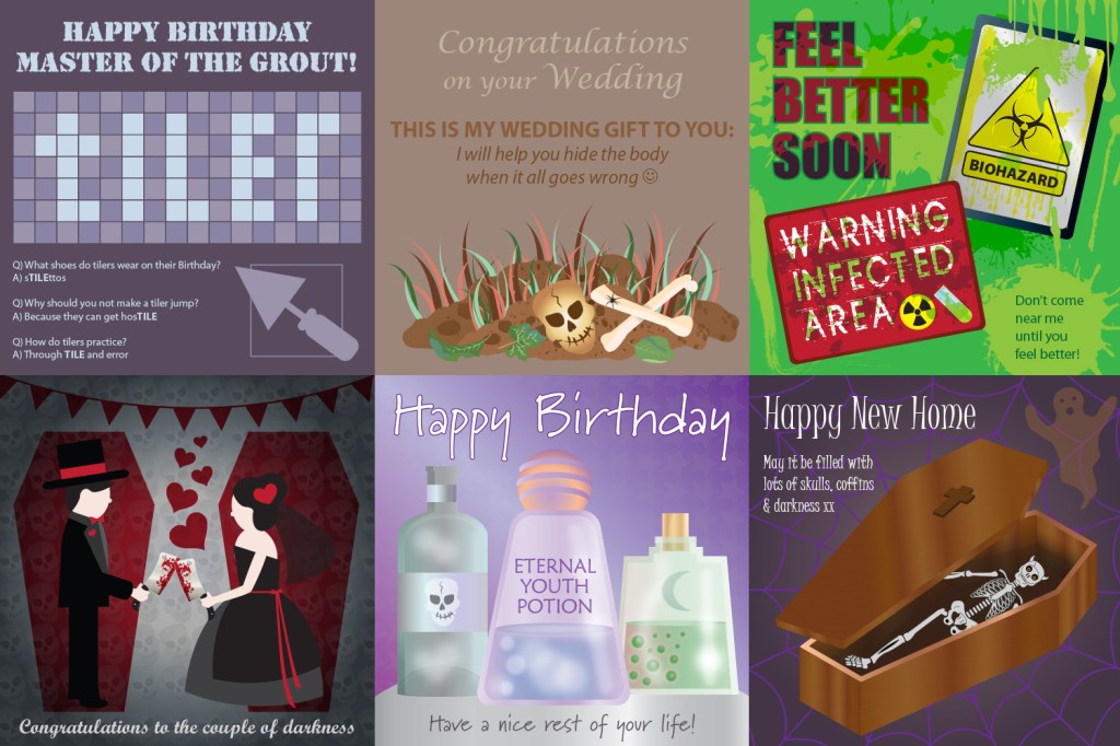 Various greeting cards created using Adobe Illustrator – these have been printed on luxury card which you can purchase from my UK Etsy shop: https://www.etsy.com/uk/shop/stuffonstuffUK