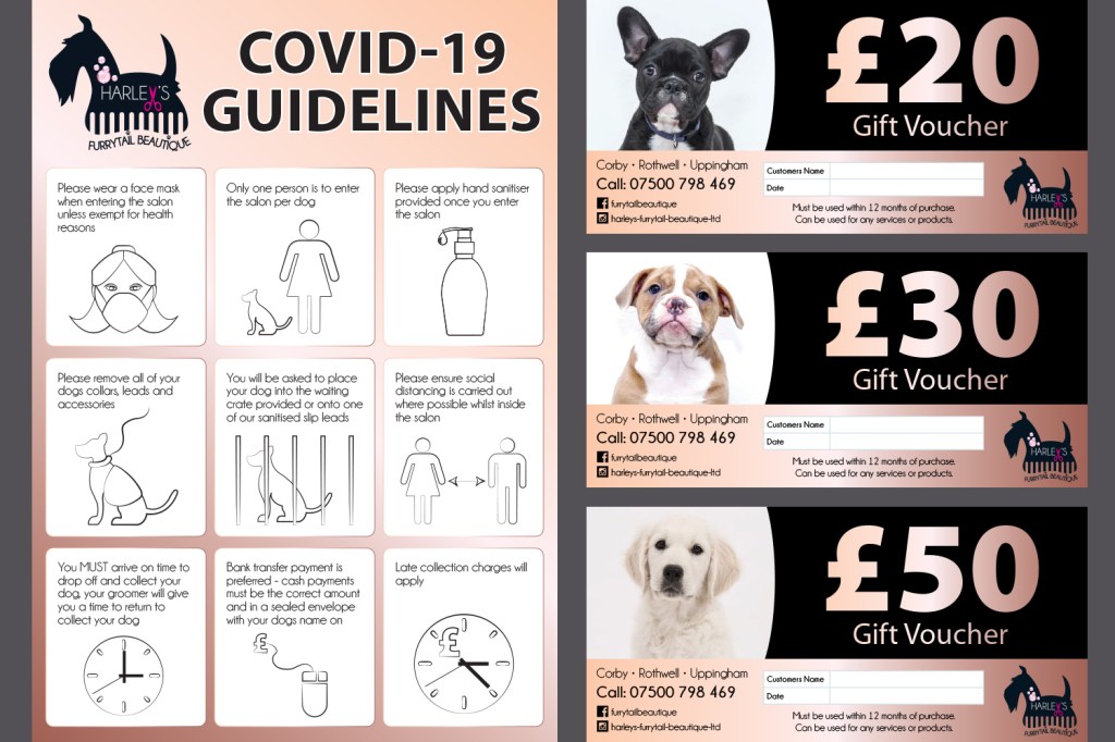 Harleys Covid Poster Flyers, Posters & Adverts, Stationery Covid-19 safety poster and editable e-gift voucher designs