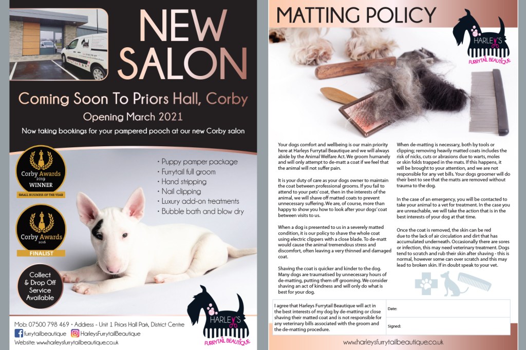 Harleys New Salon and Matting Policy Flyers Flyers, Posters & Adverts A5 coming soon flyer and A4 “matting policy” salon flyer