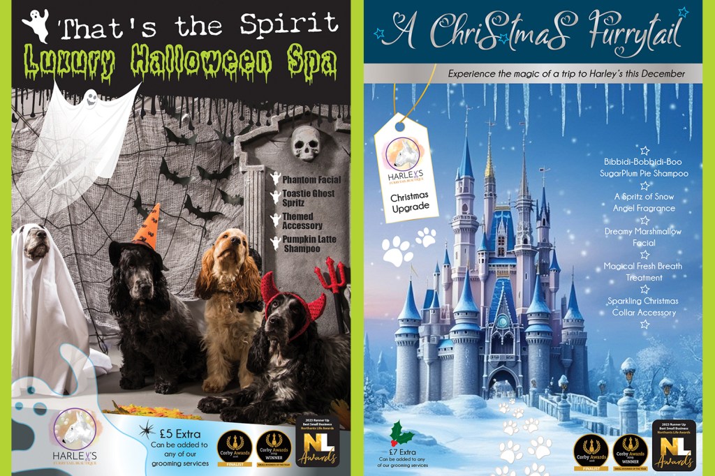 Harleys store ads Halloween Xmas 2024 Flyers, Posters & Adverts A1 2024 Halloweeen and Xmas store adverts for Harleys