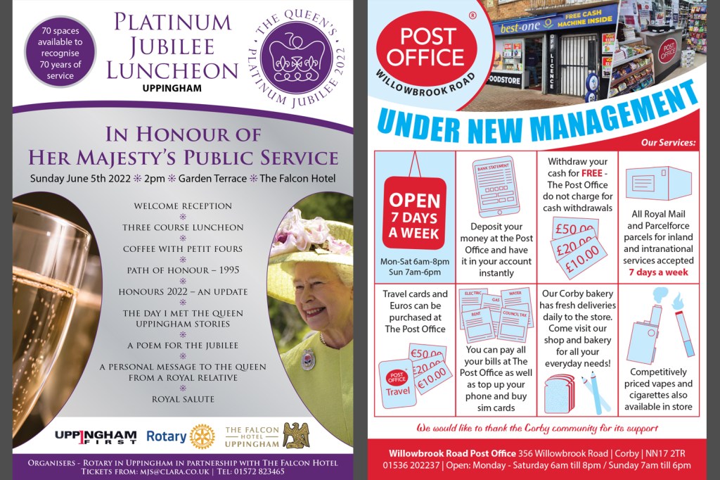 Jubilee poster and post office flyer Flyers, Posters & Adverts Uppingham Jubilee poster / advert and Willowbrook A5 Post Office flyer: