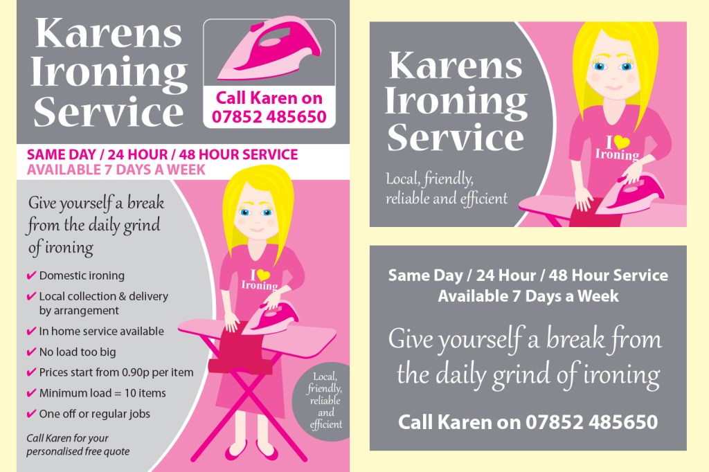 Karens Ironing Service Flyer and Business Card Flyers, Posters & Adverts, Illustration, Stationery A5 flyer and double sided business card with custom illustrations: