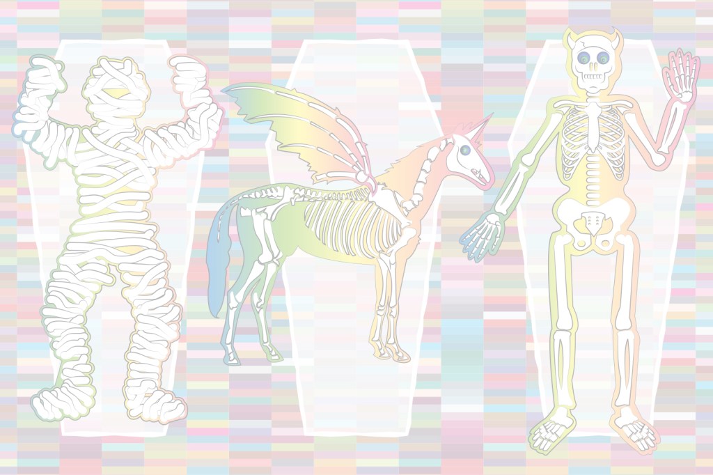 Pastel goth themed illustration created using Adobe Illustrator – this artwork has been printed on a luxury tea towel which you can purchase from my UK Etsy shop: https://www.etsy.com/uk/shop/stuffonstuffUK