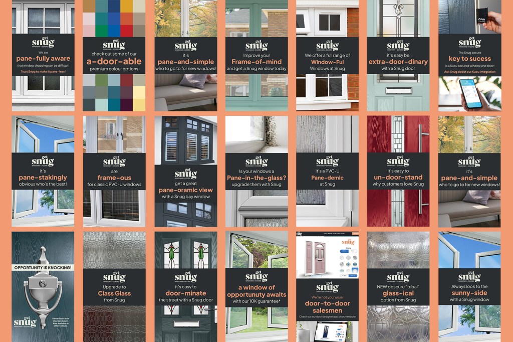 Social media adverts for Snug Doors and Windows (part of the Emplas group). I came up with relevant industry puns and designed and set of fun social media adverts / posts around these puns