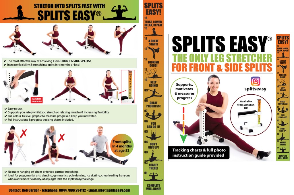 SplitsEasy Intro, Product Label, Media Ad Banners, Display Units & Packaging, Flyers, Posters & Adverts A4 introduction flyer, product label for the device, social media advert