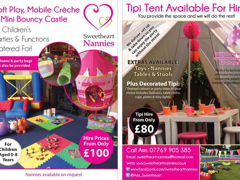 Sweetheart Nannies Tipi Tent Flyer Flyers, Posters & Adverts Sweetheart Nannies Tipi Tent double sided flyer