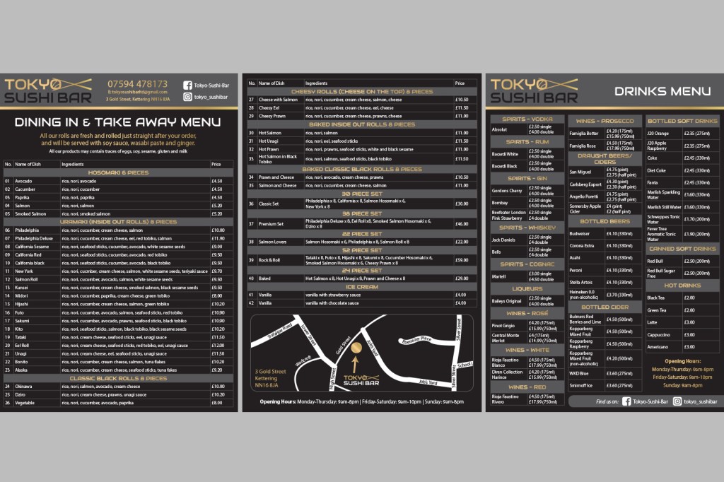Tokyo Sushi Menus