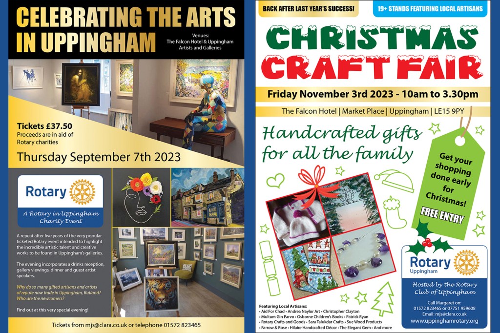 Uppingham arts & xmas posters 2023 Flyers, Posters & Adverts Arts in Uppingham poster & Uppingham Christmas Craft Fair poster
